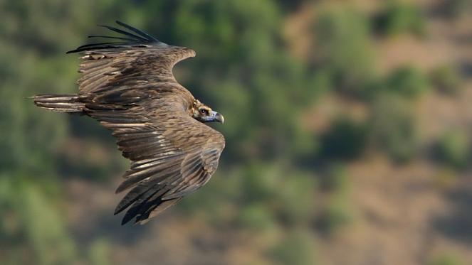 Beaucoup moins sociables que les vautours fauves, ils vivent en couples ou en petits groupes lâches. Son domaine s’étend sur plusieurs dizaines de Km² et chaque couple défend son propre territoire sur un périmètre d'au moins 100 mètres autour du nid. Il parcourt le plus souvent seul son territoire à la recherche de nourriture mais aussi quelquefois en couple ou avec des vautours fauves ou percnoptères. En vol on le distingue des vautours fauves par ses ailes tenues horizontales aux rémiges primaires légèrement recourbées vers le haut. Utilisant les ascendances thermiques, il attend les heures les plus chaudes de la journée pour s’envoler. Particulièrement adapté au vol plané, il peut planer de longues heures mais il est incapable d’effectuer un vol battu sur de grandes distances.