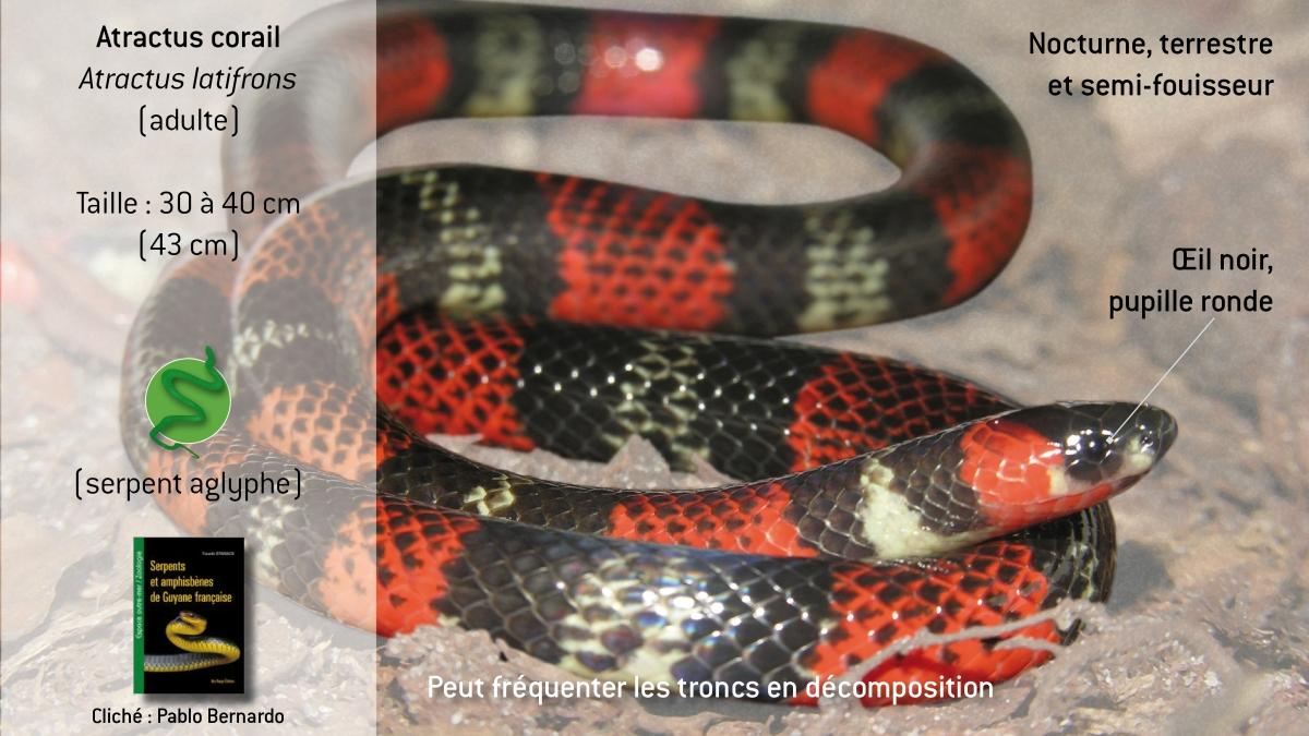 Le seul risque réel de confusion est avec son proche "cousin" : Atractus badius - (Atractus faux-corail). La probabilité de rencontre avec cette espèce parait extrêmement faible et c'est la raison pour laquelle nous n'avons pas encore pu trouver à l'illustrer… > voir l'image sur Flick'r