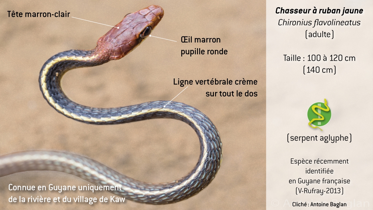 Cliché Vincent Rufray - Chironius flavolineatus - (Chasseur à ruban jaune) - Village de Kaw - (973-Guyane française).