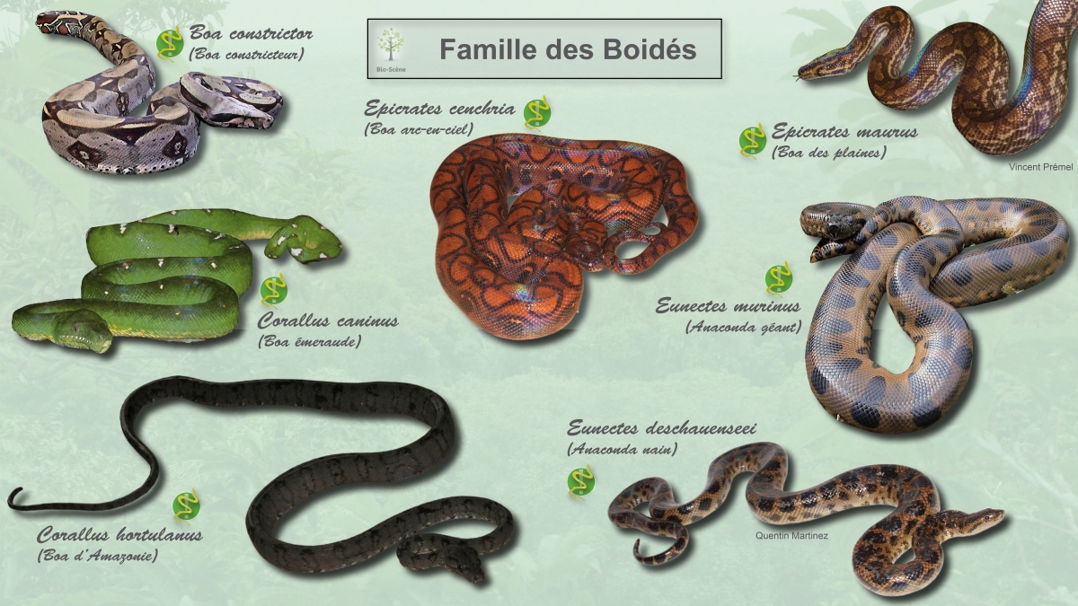 Les Boidés (Boidae) correspondent au groupe des Boas (terme générique plus ou moins ambigüe car il regroupe plusieurs genres, voire plusieurs familles réparties au niveau mondial).